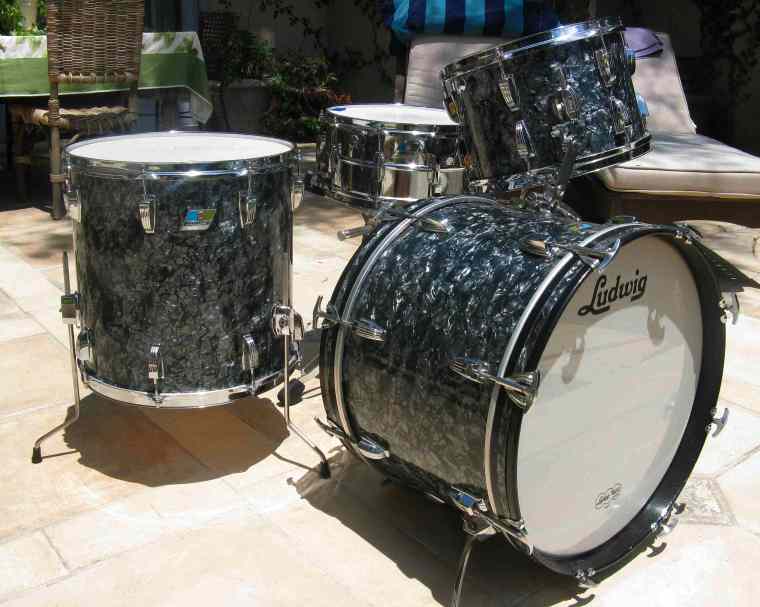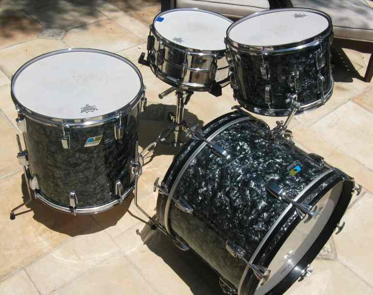 Hi...this is my first post so I thought I'd start by sharing pics of a couple of my kits. The first is a 1971 Ludwig 20/13/16 with a 6.5 Supra. I'm the original owner of the snare (a birthday gift from my parents as a kid). I was able to find a matching set from the same year in a classic color I've always liked. 3 ply shells with clear interiors.