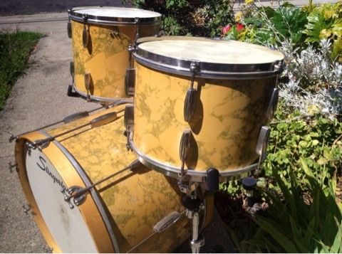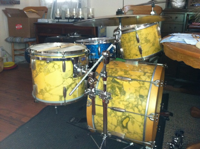 Thanks! Aways wanted a set of these. Doing a blues/jazz gig these days that just calls for them. Think "Is you is or is you ain't my baby" to "Cold Shot". Never seen a full set in that finish in person, just separate snares. Kinda cool. Definately vintage.
