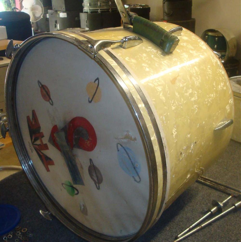 It's missing 3 Shark tooth BD lugs, The T's and claws for one side of the BD (6 each) and the tension for the bottom hoops on the 12" and the 14" (I do have the hoops). I don't need it but I'm tempted to keep it because the finish is just killer ...If someone has the snare and wants to get rid of it please let me know. Now, if someone wants the set I might trade it for any interesting vintage piece...Im looking for a lot of stuff so you never know...In the meantime comments and compliments are always welcomed