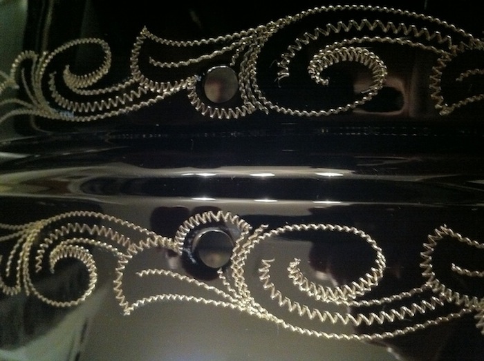 It's only taken three and a half years for John Aldridge to fit me into his schedule but he just sent me pictures of the first drum he is engraving for Not So Modern Drummer: A 4 x 14 black nickel chrome on brass beaded shell drilled for ten lugs and engraved with a Slingerland scroll based pattern and the NSMD logo. These black chrome drums are just like the original ones that John made when he was running NSMD and will be available in several sizes and with hardware options. There is a new shell in the line up; an unbeaded copper shell with brass bearing edges! John is engraving a 6.5 x 14 shell right now and it is so top secret that if we tell you how and where we make them we will have to kill you. Personalized engraving will be an option. These two drums are for sale. I included pictures of the 4x14 engraving. All new arrivals will be announced at the Not So Modern Drummer website store. They will not be sold on Ebay.