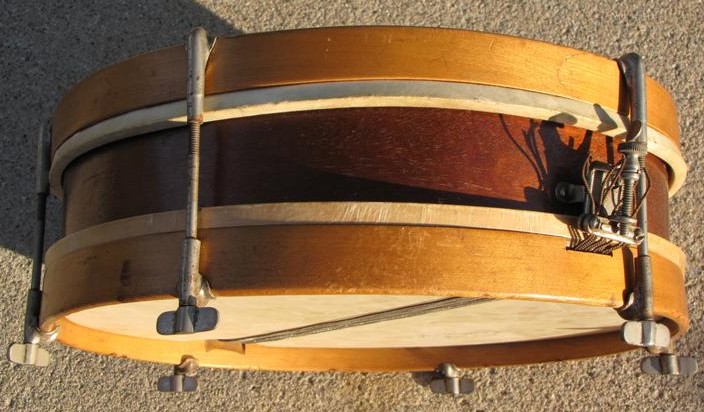 Shell, hoops, and heads are out of round as there are no re-rings inside the drum and I think it spent some time on it's side over the past 80 years or so. Probably was subjected some moisture as well. No date stamp but I can tell you Wilson Brothers were in business from 1915 to 1928.