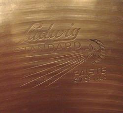 Ludwig Standard (shooting star) - These cymbals were made from the B20 or the NS12 alloy. NS12 will be more silvery in color and will typically have the "German Made" stamp although this is not 100% true since some of the larger sizes were made in Switzerland also. NS12 cymbals can be great shimmery sounding pies with less dark overtones than B20, but the alloy is soft and the cymbals are easily damaged therefore you absolutely must play and listen to the cymbal before purchasing. I can attest to this as I have a few dogs around. These cymbals may also carry the "Swiss Made" stamp and are usually B20 cymbals if stamped in this way. These cymbals also tend to be thinner than Formula 602's. The same comments apply as for the Ludwig Paiste cymbals re: condition. These cymbals also tend to be more common on the market.