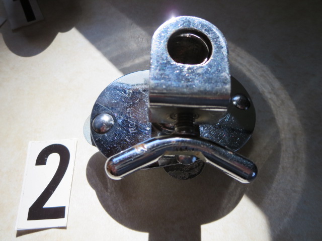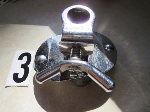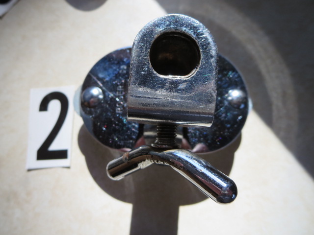 this one is unusual in that the hole inside is perfectly round....every one I recall has a 1/2" flat spot for the long downstem to lock onto it...Prototype?..$15 also..