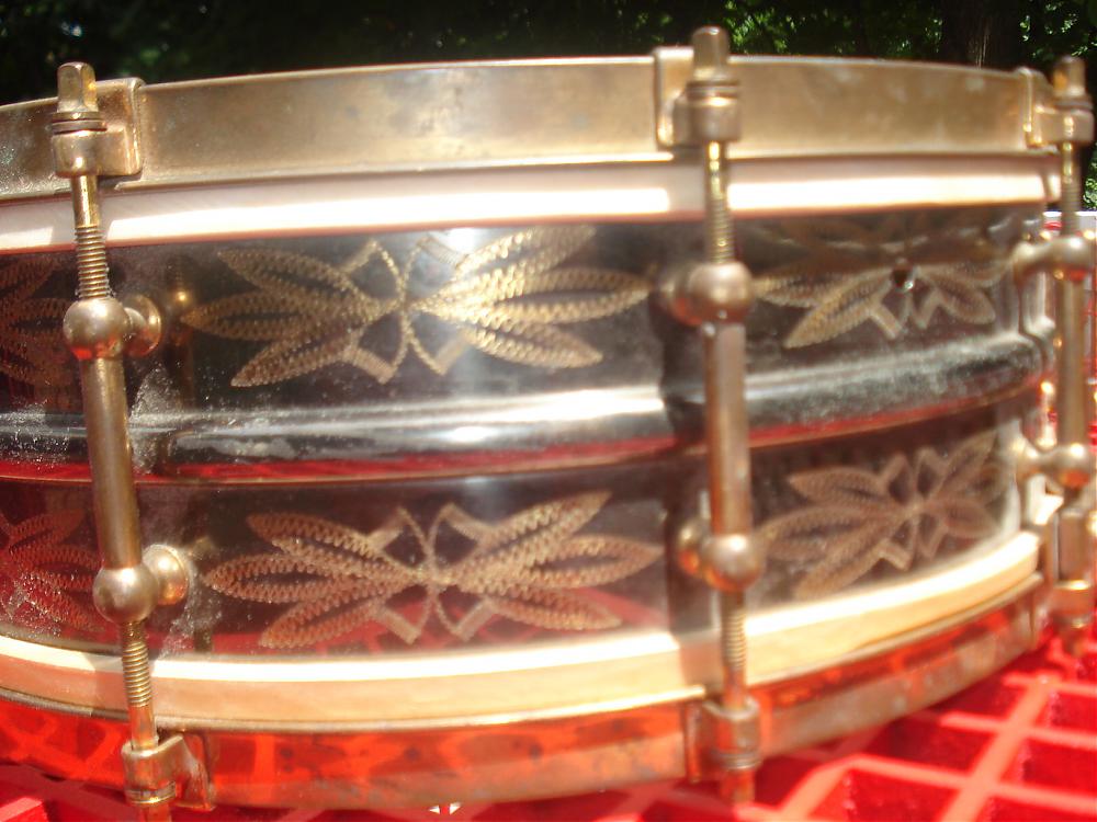 This is the only thing I'm missing on this drum. The etchings are rosettes and has snares top and bottom. The bottom snares can adjust each wire.