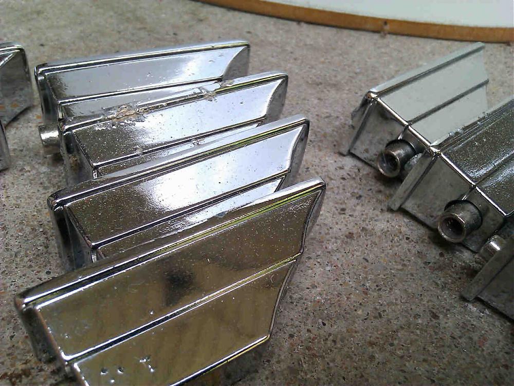 - 16 lugs, complete as well, some in good condition, others with chrome pitting, fitting with t-rods and M6 thread, distance center to center: 51 mm = 2",