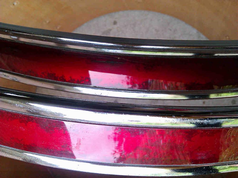 - 2 hoops, size 22", with original red metallic inlay, which show some signs from the past time.