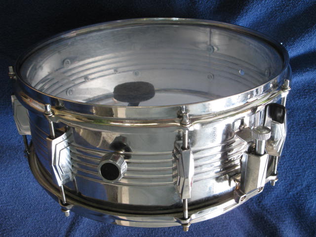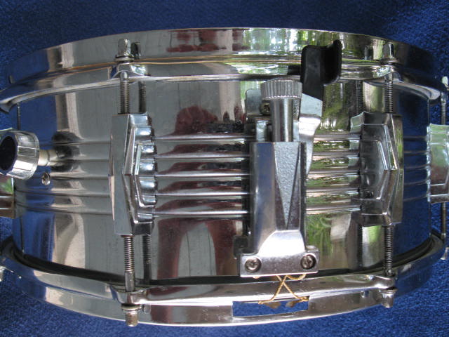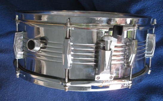 I recently found a Pearl metal snare from the late 60's w/ 8 Imperial lugs (copies). They were as beautiful as the original Ludwigs (the type last used on wood drums of the 50's). The Pearl steel shell was very thin & flimsy, & the strainer was missing parts, so I decided to transfer the lugs & hoops to a later version of a Pearl heavy guage steel shell w/ a working strainer. (sounds great, looks great)