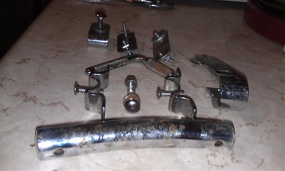 So my question...Im pretty novice to restoring vintage drums..i have a couple slingerland kits ,a kent set , plus the pearl president kit) ...Ive been watching a few posts here of guys cleaning up there old hardware but just wanted to know what the best thing to use to clean and restore the bass drum rail consolette for the pearl president kit?? It doesnt look very good and i stumbled upon the peice when i was sorting through my vintage drum parts. I just want the kit to look complete and original at this point..Are there any specific products that you experts recommend?