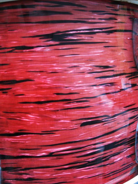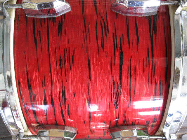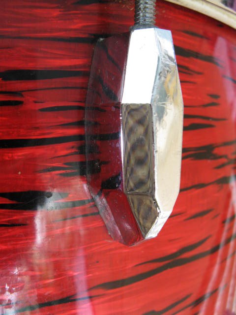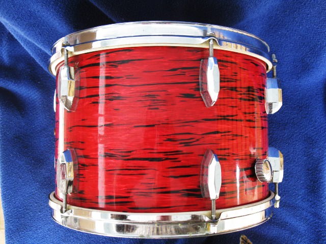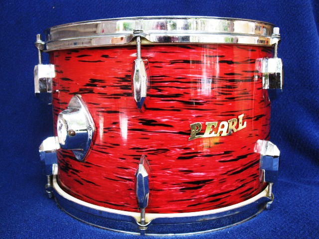 Pearl tom, Red Oyster Pearl, 9X13. 8 lugs per side, Wrap is vivid , but shows some minor wear, scratches, scuffs. Has tom mount stamped, Japan. Drum has no reinforcement rings. 6 lugs have some minor puckering of the wrap near the head. Muffler in working order(knob stem is slightly bent). Pearl in metal script is bent. (see pics). $55 + $15 shipping includes shipping, in USA. Local pick up. Overseas buyers contact seller for shipping