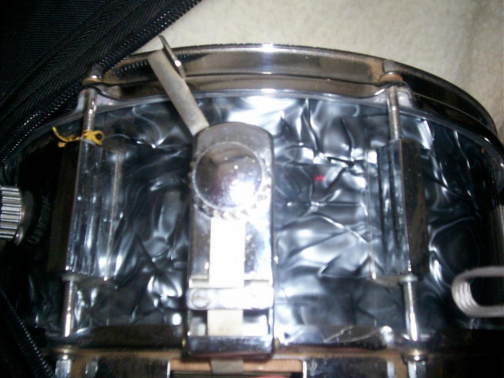 Hey "D"- That photo of the strainer would date your drum from mid 1969 on.The first strainer in that shape that Pearl used was more rounded at the end near were the snare wire cord goes.Your strainer has the bar piece at the end...Mikey