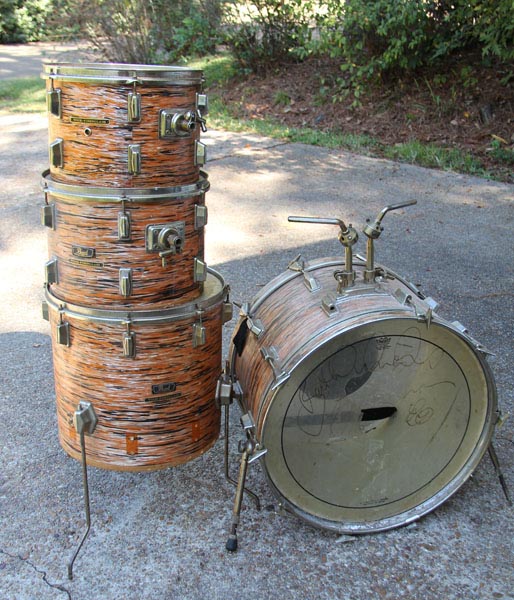 The floor tom's bottom lugs had been removed and a few more broke when I was taking them off the other toms, so I'm missing a few parts that I'll need to complete the rehab. Here's what I need: eleven lugs for the 14" tom, a 14" six-lug rim, a claw and T-rod, and ... that's it, really. Bill, Mikey, anyone have these before I post in the "Wanted" section?