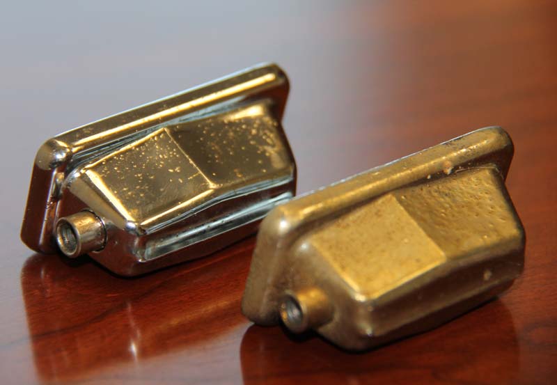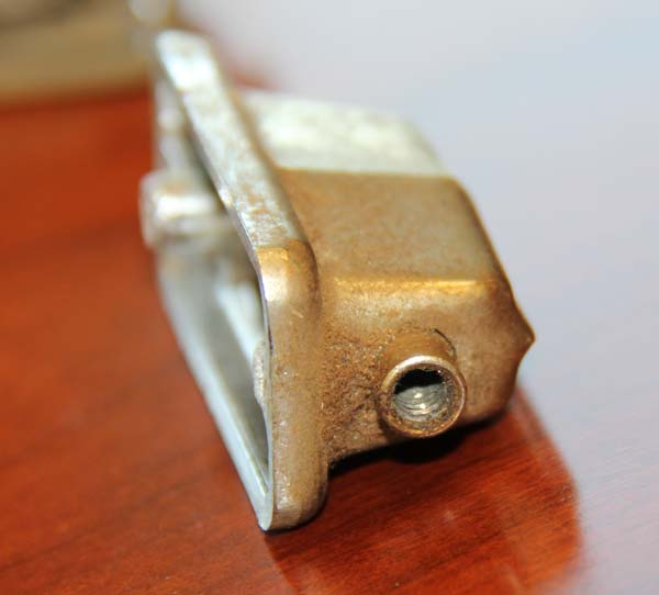 The lugs were nice and heavy and had a good chrome job. Every one had some pitting but none of them had any rust, dings, or dents. They shined up great after a cleaning with soft-bristle toothbrush, washtowel, rinse, and t-shirt buffing. Didn't even need to apply chrome polish. Toms mount got the same treatment and looks great. The ball-joint tom arm that I was able to completely disassemble also got the full bath, but the one I couldn't crack loose got just a vigorous surface cleaning (they don't look any different but I like to do the job right when I get into a project). The spurs were the hardest because of the grease and grime on the threaded lower sections, but they finally got finished and are shiny like the rest of the hardware.