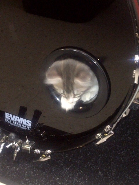 We have three now, and I have to keep my old-timer (20 year-old cat) Bootsie out of the basement because he likes to poop behind my drums! Does it -every time- he gets into the basement. Leaves me a steaming load whenever he breaks in, without fail. I keep telling him, "I'm the only one that is allowed to stink it up behind my drums!"