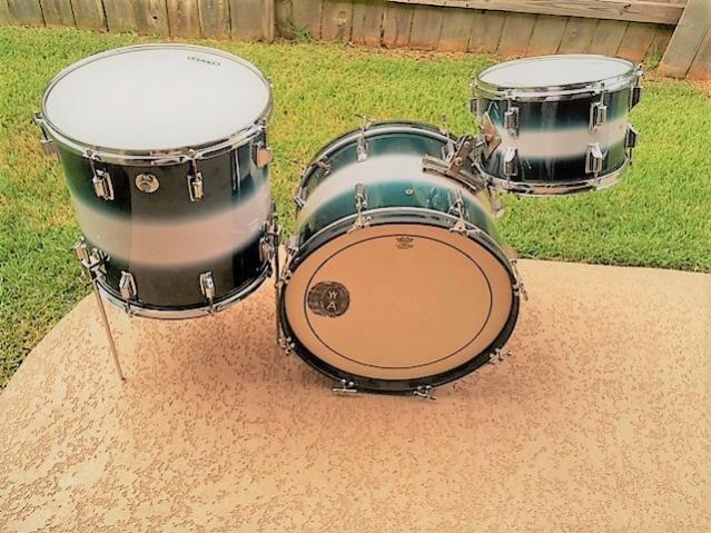 If you're going for the look, and don't want to have the hassles and expense of painting (not to mention the environmental effects), you can do what I did. I found a photo of a vintage tom in the colors I wanted for my vintage 1966 Walberg and Auge set. I sent a copy of the photo to Bum Wraps. Less than a week later, I had the very durable pieces of wrap at my house. The wrap and hoop inlays were pre-cut to the drum sizes I provided to Bum Wraps. The cost was very reasonable.