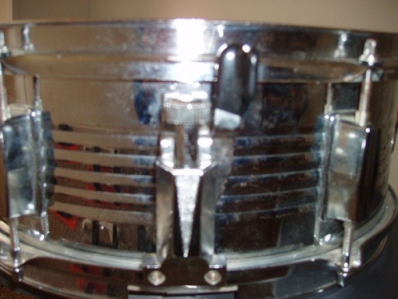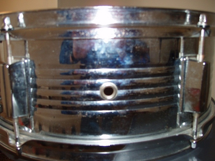 I just bought a used snare drum off ebay. It is 5 1/2 x 14. Metal. It has 6 lugs and a damper inside. It has no labels or numbers on it. It has a great sound. Can anyone identify it's brand, model and year? I am attaching some pics.