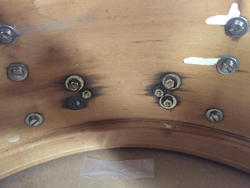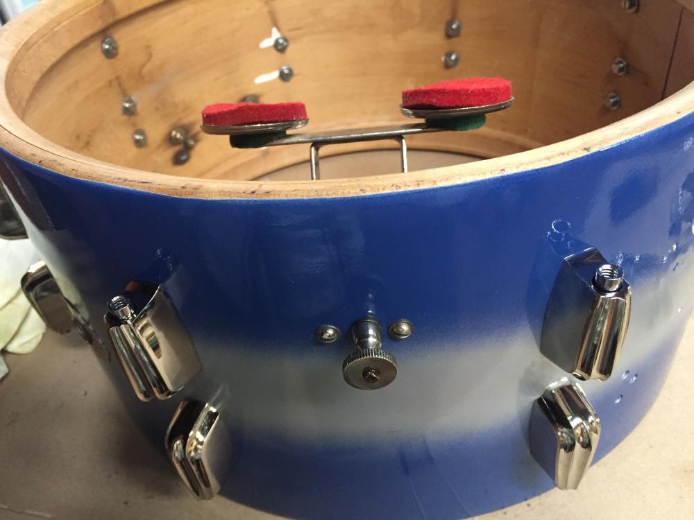 I'm restoring this Slingerland Radio King snare. I think it's from around '39/'40 but wanted to get your opinion on its manufacture year, exact model designation, and also see if someone has information on the correct sizes of washers used to secure the snare bridges to the shell.