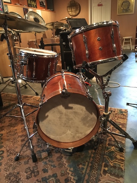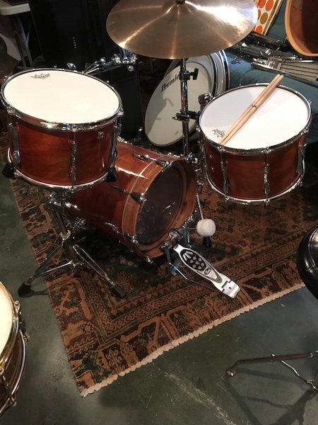 I picked up a Premier kit for a song. 22, 13, 14 and 16. The bass drum had a 4" hole in the shell so I converted the 16" floor tom to a bass drum. Stripped the black wrap, sanded, clear stain and poly on the shells. Cleaned up the hardware, bought some new parts and now I have a pretty interesting bop kit. Fun project.