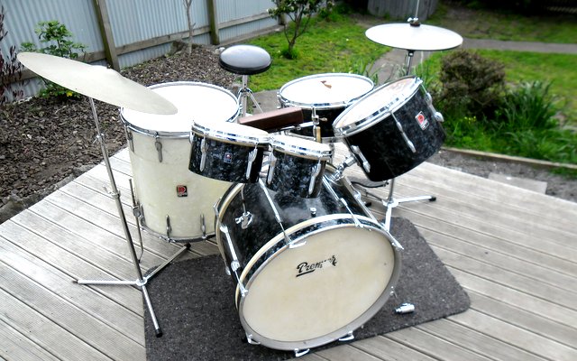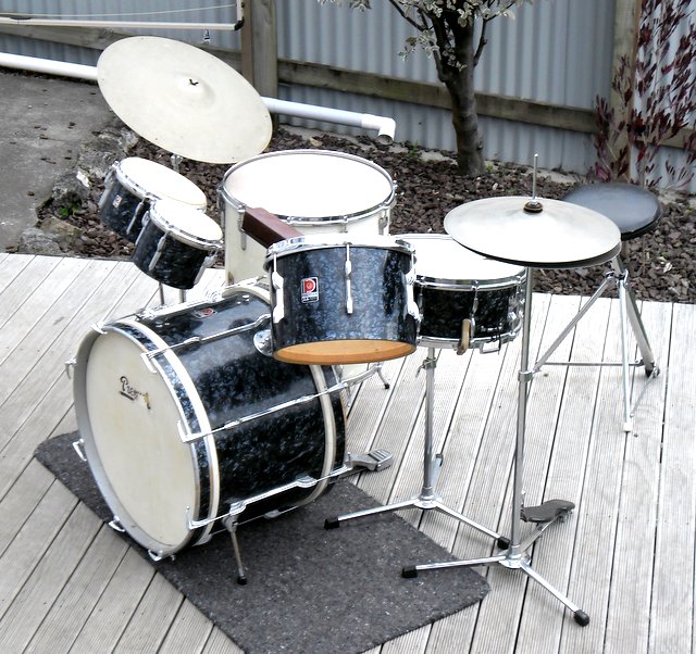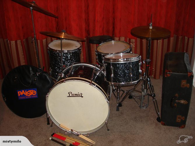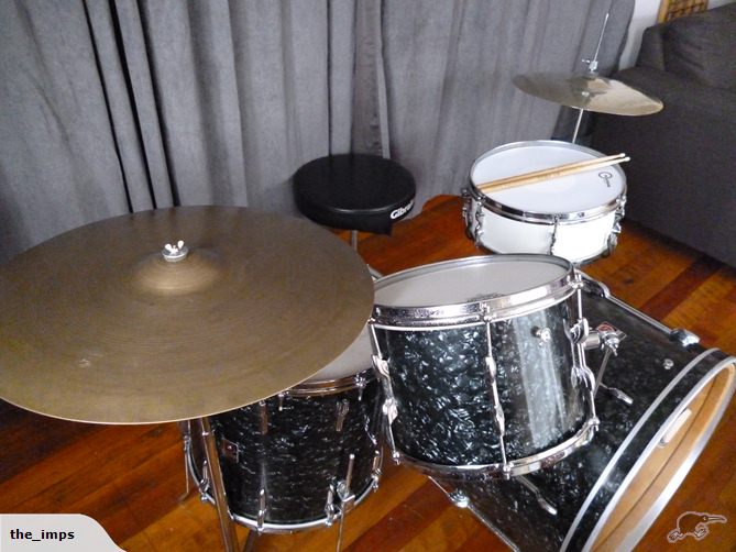 I spent the day on the road earlier this week collecting this early 60s Premier kit. It was owned by the drummer of a band called the Hi Lites who played the local dance halls in the 60s. I bought it off the sax player, the only surviving member, who was able to show me photos of the band in action all those years ago. And sure enough, the odd floor tom was there right from the beginning. My guess is the kit was the '52' outfit that had no FT and a FT was added. Being on the other side of the world the choice was probably between waiting half a lifetime for a BDP FT from England or going with whatever was available.