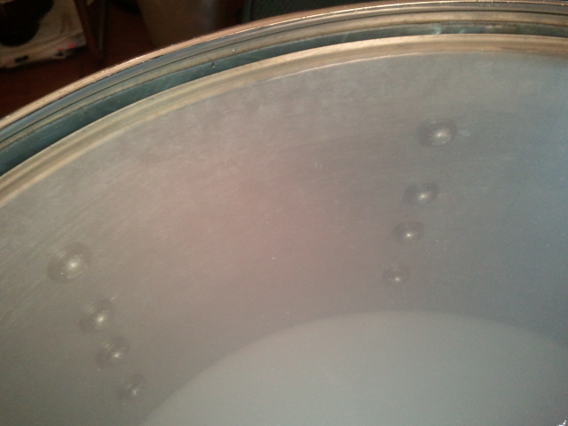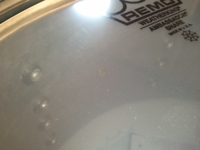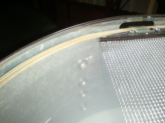 So, I wonder when 4 points snare butt was adopted by Gretsch? After I received the snare, I found a part of around the lugs are peeled off, but covered by silver painting. Then, I doubt this snare might have been repainted and the tag also might have been peeled off the shell.