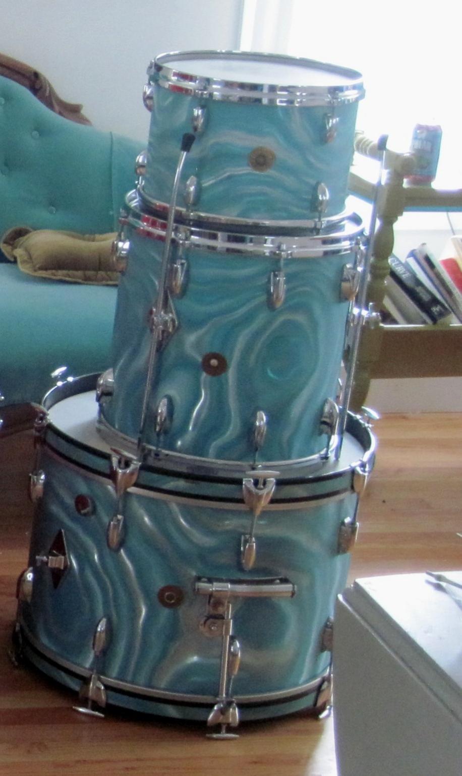 Flash forward 45 years and you can step into it for a factor of 3x, with some where and tear, but maybe with the aging of the maple to offset that. So again, why no sale? I sold the three-piece in aqua satin flame a couple of years ago for $1600 (no snare), but the same flaming issues. So I'm puzzled about this one. I'd like to have it, but.............