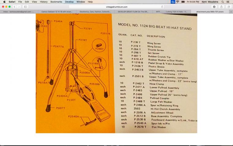 Say guys, I've got a 1976 vintage Ludwig Atlas model 1124 hi hat. This is the one with the round plastic thumbwheel that you move to "increase tension." The internal spring seems to be getting weak, because the hi hat doesn't spring upward as fast as it used to. It's getting sluggish.