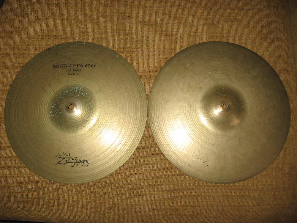 I have 2 sets of 14" A Zildjian hats. Some New Beats and some old thinner early 60's hats. I need to either sell the old 14" or the 13". Preferably the old 14" so I will have 13" 14" & 15" hats. These 13" say New Beat and Brilliant on the bottom hat.