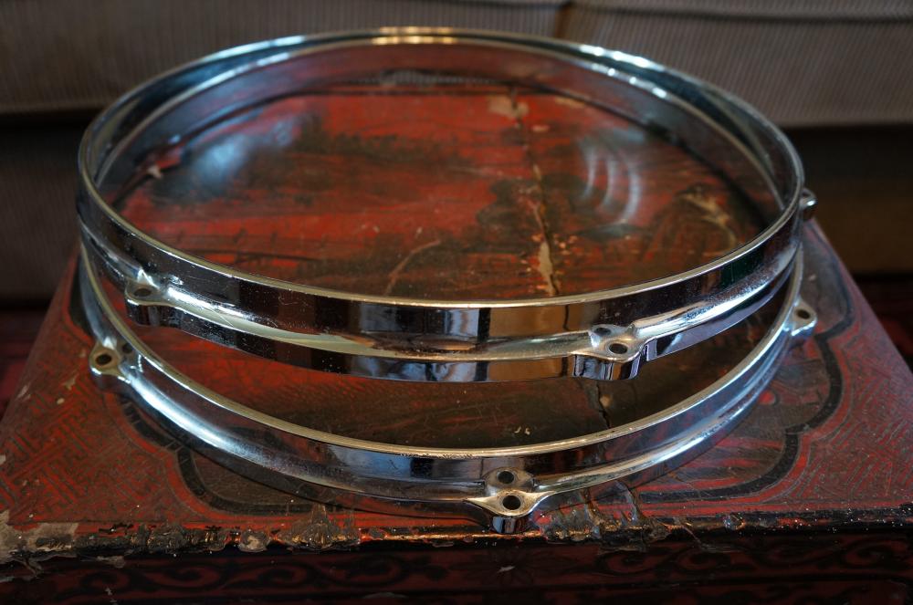 Pair 14" Original Gretsch RB Snare hoops - considerable pitting, flaking/oxidization