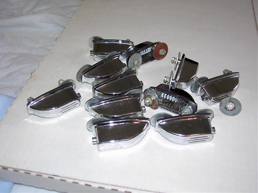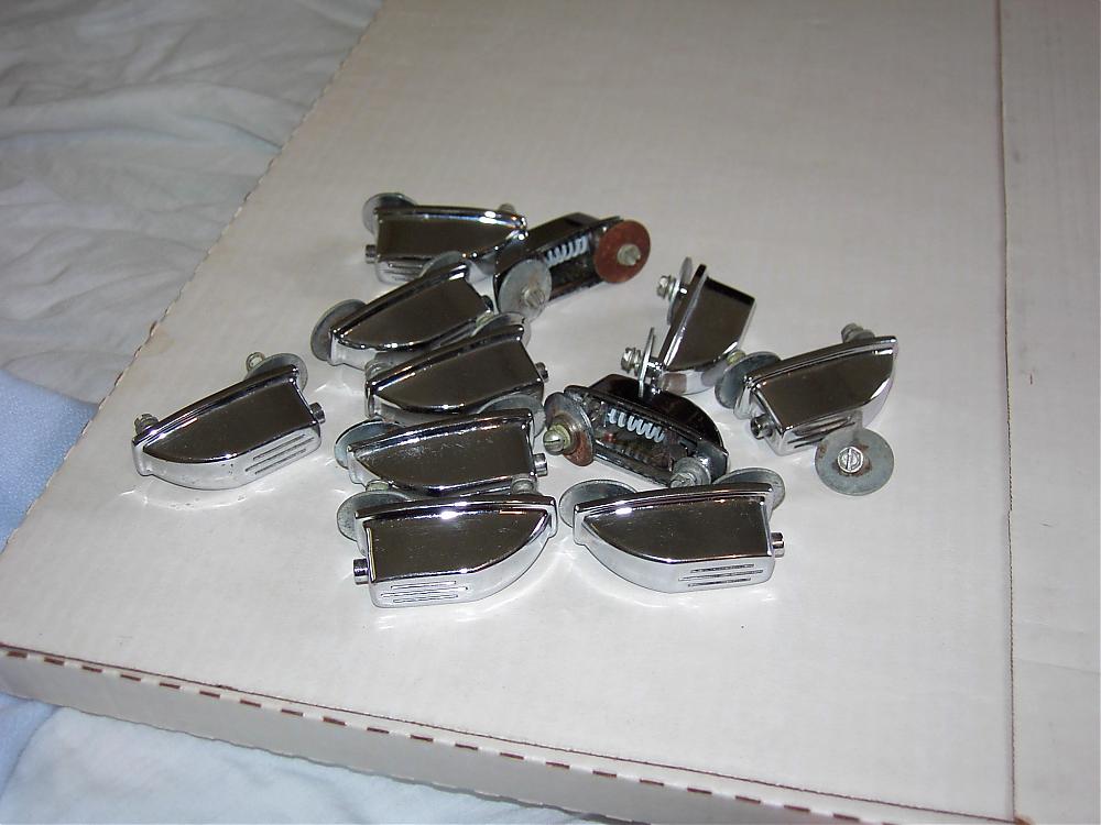 Rogers 360-380 lugs chrome (11) - total. with all mounting hardware included these are mostly player grade, they have pitting and scratches on most the lugs. $20.00 +ship cost