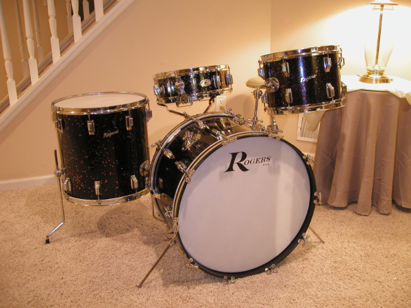 I am selling my Rogers Mardi Gras Beavertail Constellation drum set for $2,500. The sizes are 22-13-16. This set came from Frank's Drum Shop in Detroit in the mid 60's. The drums have Dayton Holiday tags in the 82,000 range with flat grey interiors. The bass drum interior was painted black at some point in time & then repainted grey over the black. I sent the bass drum to Jack Lawton to clean & buff the shell - he installed a Rogers drum tag that he had in his possession. The drums have the purple tinted late version of Mardi Gras. The floor tom has several superficial stratch marks most of which are not visible under normal light conditions but they do show up in the pictures with the camera flash. There are 2 gouges in the rack tom from rubbing against the snare, but these are shallow and are about 2 - 3 inches long & 1/4 inch wide. I have not done anything to the FT & TT other than clean it with Novus 1.