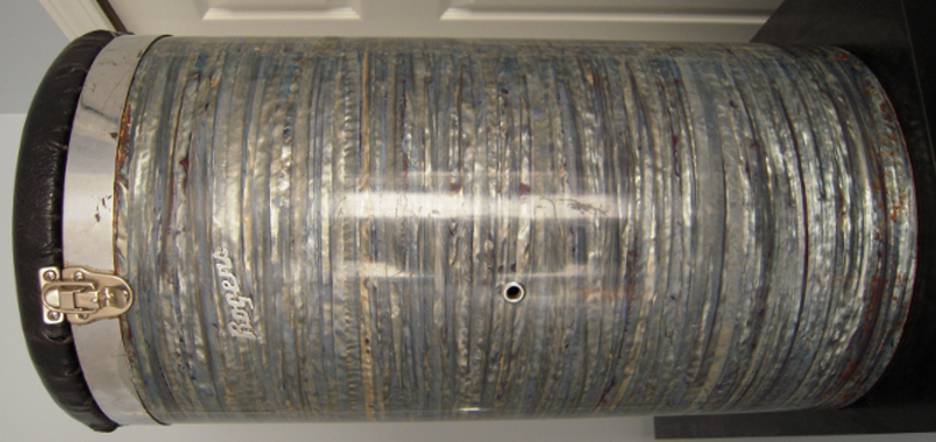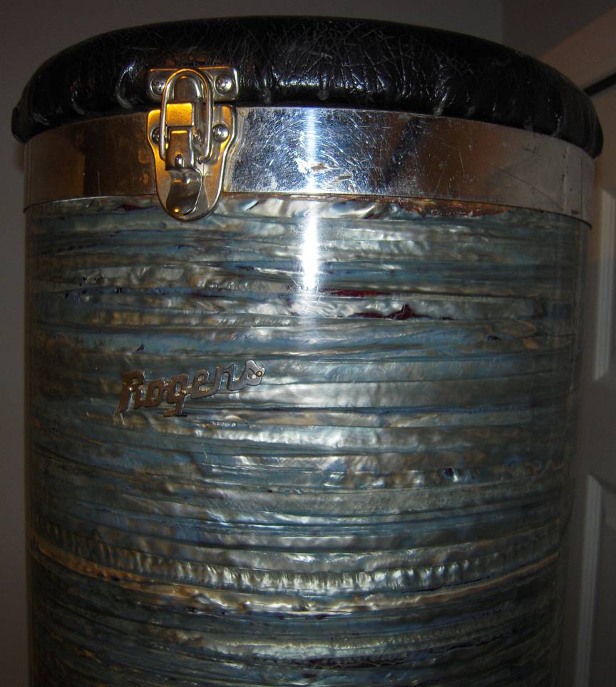original beautiful blue strata pearl. 12" round by 24" tall of it. Missing bottom chrome ring. Top front and back latches are nickel replacements. Seat needs to be re done. Bottom and interior of throne wood is solid and in excellent condition. Some dents and dings in the pearl. Not mint-but very pretty and rarely seen. $405.00 shipped in US for a US postal money order. International please email direct for a shipping quote. Thanks, Gary