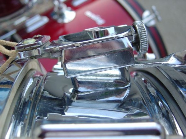 Notable Issues: The snare shell is dented behind the strainer. The Red Sparkle Wrap has a few scratches & scrapes. The head on the Swivo tom arm is a bit loose. Missing rubber feet on floor tom legs and spurs. The tom arm collet that's mounted to the BD has one arm broken off.