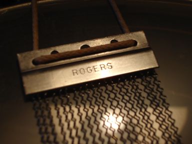 Original heads all the way around, with both bottom Tom heads in unplayed condition. Original Rogers snare wires in VGC. No cymbal arm.