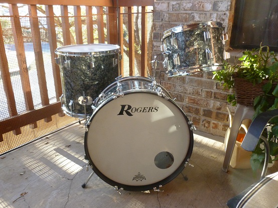 OK, I'll swallow my pride and try one more time to sell a great kit. This is a Rogers Cleveland era kit in a beautiful black diamond pearl finish. Everything is original except for cymbal arm. All tags are present and say Holiday, Cleaveland, Ohio. I was told the kit was made in 1965. This kit is easily a 9 out of 10, it has an 8x12,16x16,14x20, thanks,