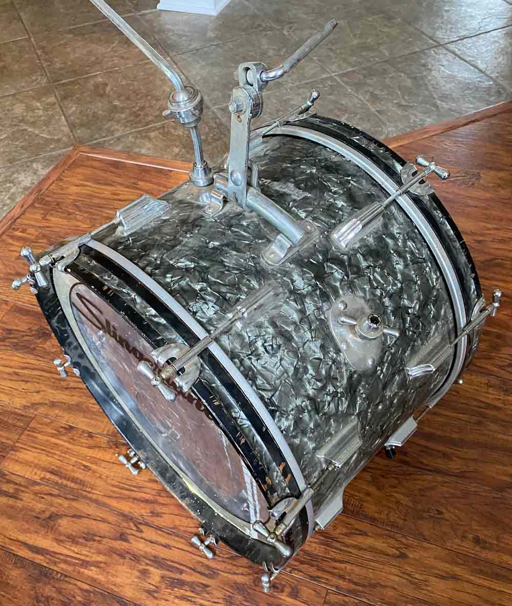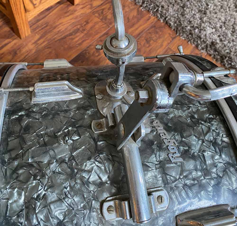 On the drive to pick them up I was still a little nervous that I had overpaid, but I figured worse case I could “chop shop” it and sell it for parts. When I arrived the school’s band director greeted me at the door. When I told him I was there for the Rogers stuff he sighed and said he almost bid on that lot himself. That gave me hope that the condition was at least decent. When I finally got to see them, I was pleasantly surprised. Oh, and of course I did not leave without asking if the floor tom was possibly hidden away somewhere. He assured me that he had looked everywhere for it. I left my name and number with him just in case.