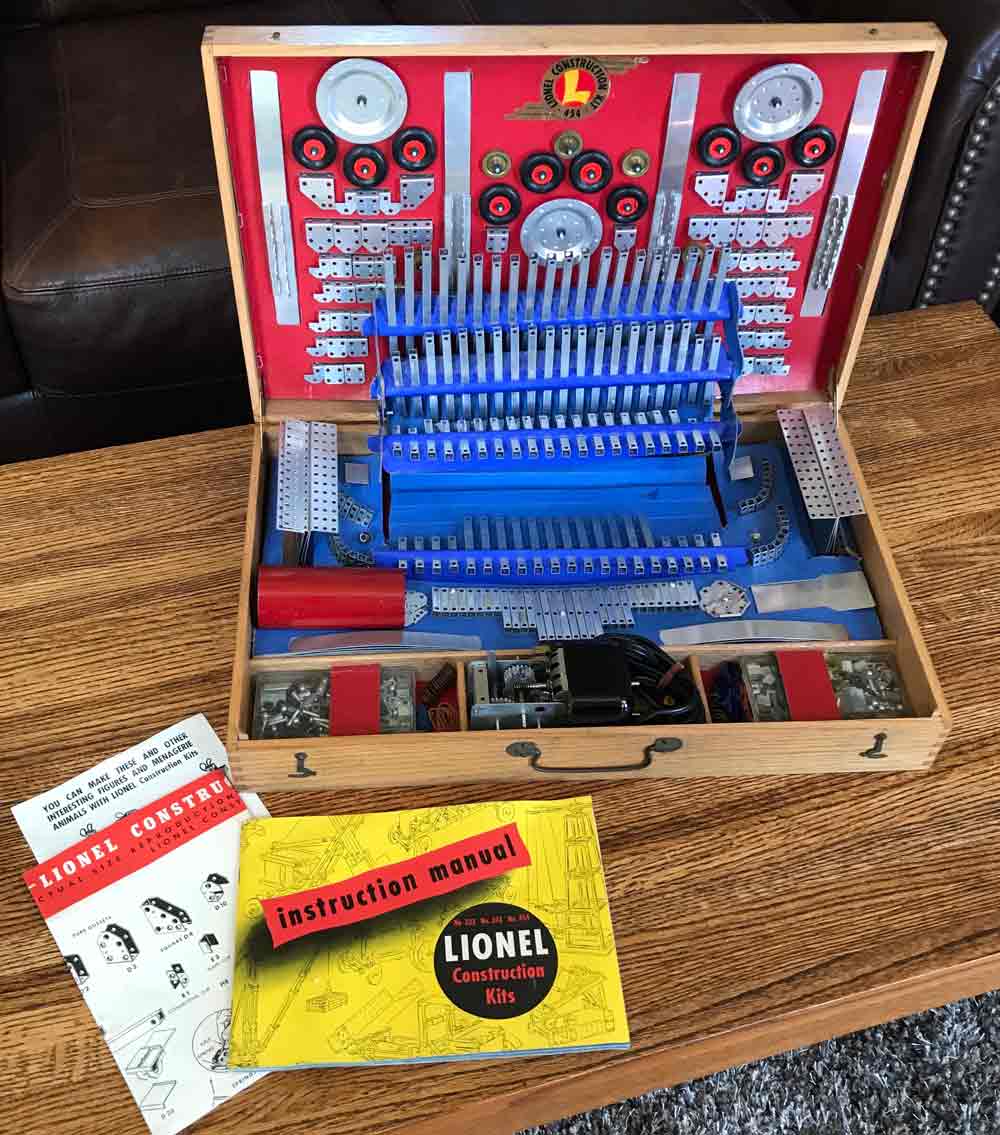 I ended up spending exactly $20, for which I got a great sounding set of vintage Koss Pro headphones, a nice pair of vintage MIJ binoculars, a nice camera tripod still in the box, 5 or 6 new fuse protected power strip extension cords, and some target shooting supplies (rifle rest, pistol cases, and metal spinner targets). When my arms were full and I was starting to feel a bit conspicuous like a fat guy lingering at a buffet, I spied a briefcase sized wooden box on the shelf. I peeked inside and it was filled with a mess of what looked like Erector Set parts. I still had one free index finger to carry it, so I grabbed it too. Once home, I took a closer look at the wooden box and it’s contents. It was like an Erector set, but it was made by the Lionel toy train company back in 1948. When I looked it up on eBay, I found a few of them for sale for between $200 and $750. It took a few hours to inventory and reorganize the hundreds of parts in the box, but in the end, it appeared that my kit was 100% complete. Even the cardboard separators used to display it on the shelf in the hobby shop were still there and virtually untouched since 1948. Another eBay listing had a bunch of excellent pictures showing how the contents would have been organized from the factory, which was a big help in sorting mine out. Anyway, my $1 set sold a few days before the school auction for just about exactly what it cost to win the Rogers Holiday drums. I know, I know, us flippers can always backtrack through a chain of flips or trades to justify the price we paid for something, but this one was just one quick flip and the amount was so close that I’ll always think of them as the $1 Holiday set.