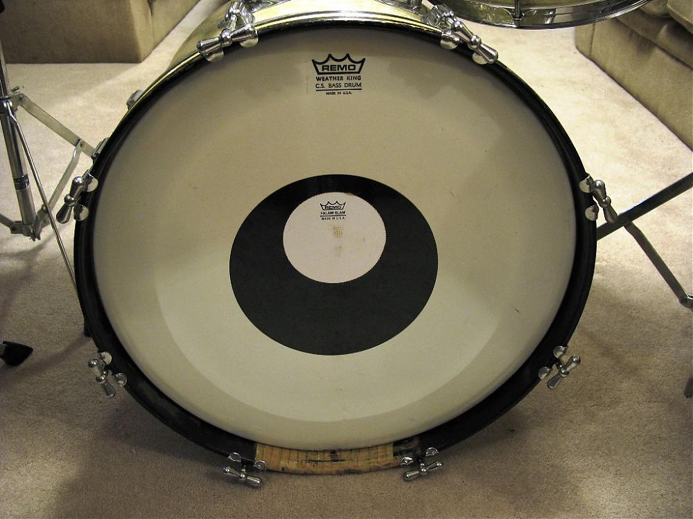 Bass Drum Serial #56852 - Front Head is missing and repair has been done where foot pedal goes.