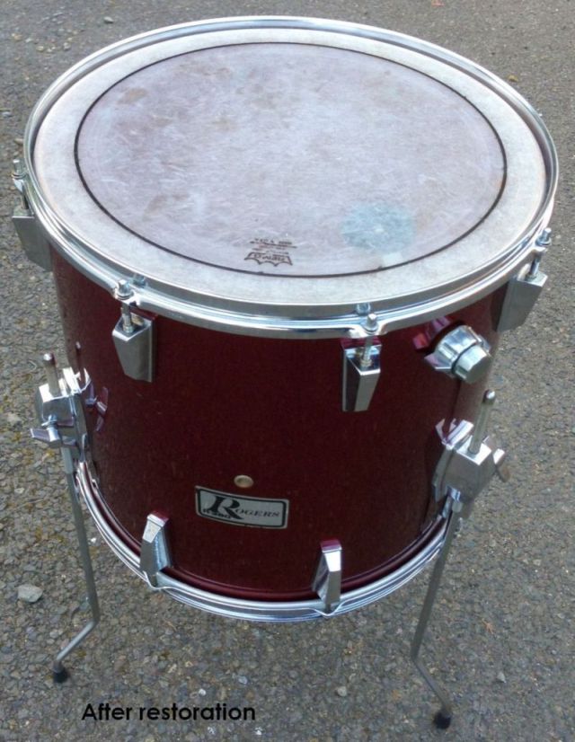 I just "mostly" de-rustified, cleaned and lubed this Rogers floor tom. I couldn't remove all of the rust, but it looks decent now.