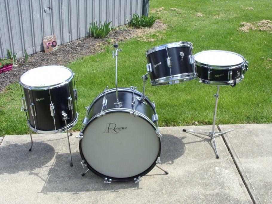 This is a mid 1960s Rogers Tower model drum kit. Catalog color Solid Jet Black Pearl. 4-Piece all matching kit, with an actual Tower model snare. 12x8, 14x14, 20x14, 14x5 sizes.