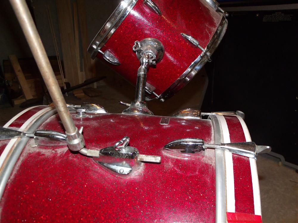 This was a deluxe kit. You don't see too many of these with 8 lug bass drums and the cymbal arm intact. The floor tom is the deep 14" one. That is a serious floor tom. Don't discard(well , you can in my direction, if you want) those thin ,original Roxy(Tromsa made), reso heads. Those two toms , sound best with thin reso heads----Tromsa, knew what they were doing, working those shells to the max.