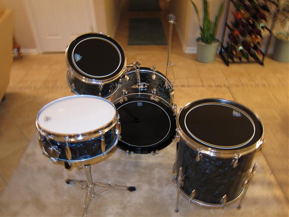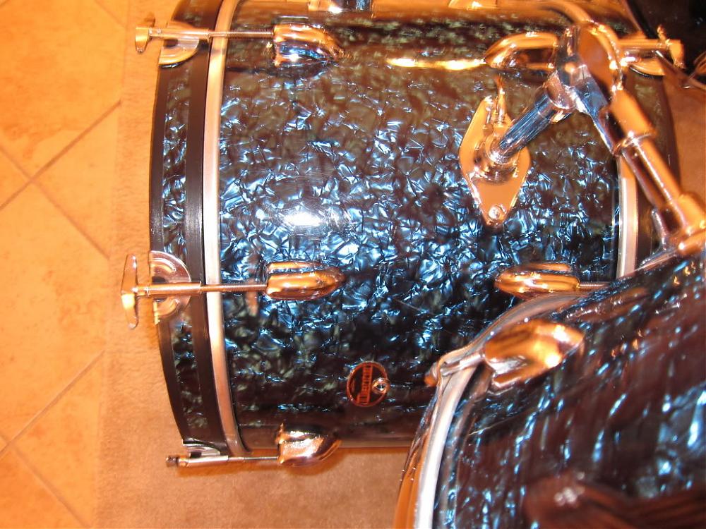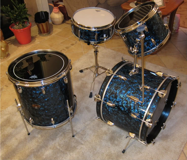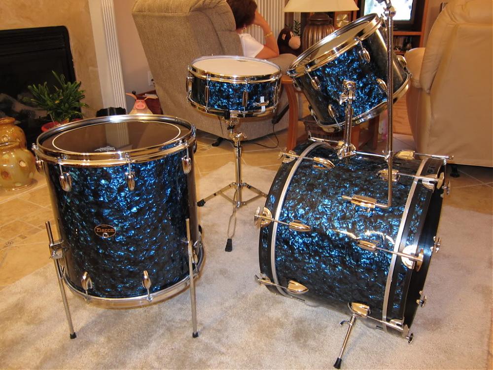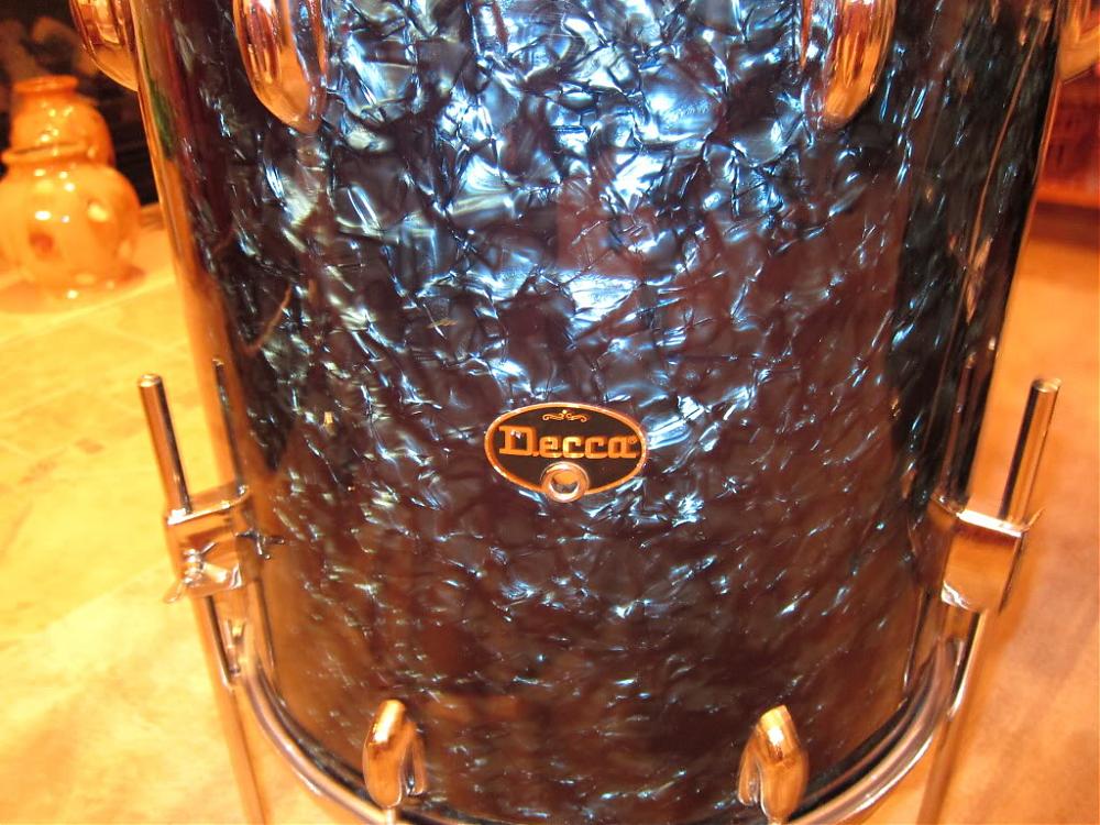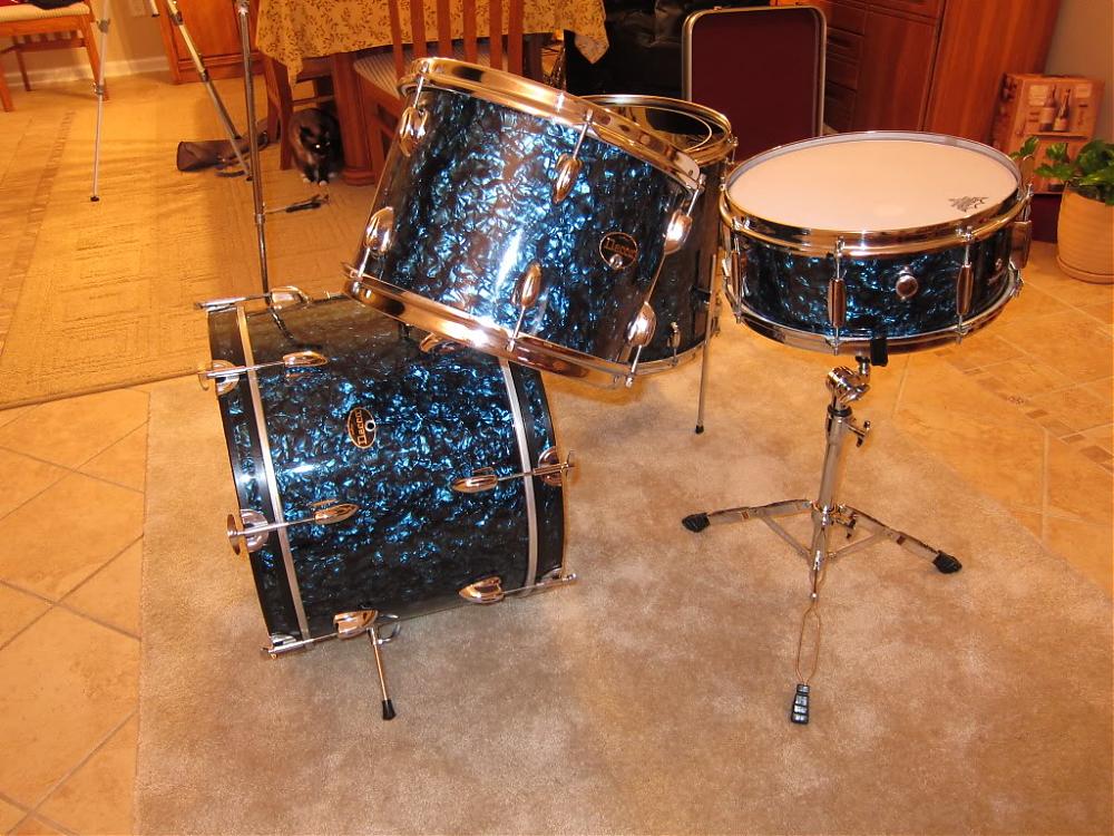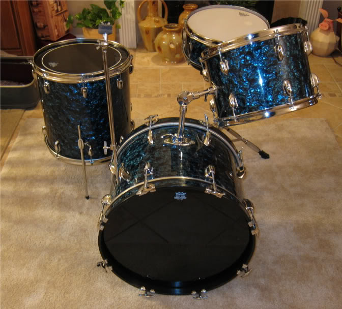 Vintage 3 piece Decca Blue Marine Pearl Jazzette w/matching snare - $225 (Atlantic & Kernan)