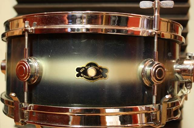 I came across a local auction advertising a George Wag Snare and my spidey sense's started tingling. I had never heard of George Wag and figured it was probably George Way. Next this you know I came home with this ! A really cool duco George Way Studio model. Even came with the original stand and George Way Drum key. The drum looks super clean except for the strainer looks like it's been banged around a bit and the throw does not seem to operate. Either that or I haven't figured out how to work it yet. This is my 1st experience with these drums.