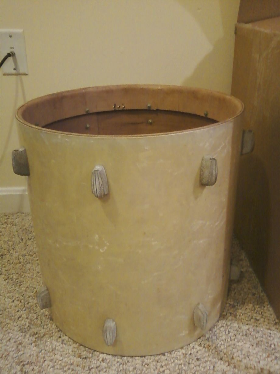 16" RK Tom. Has the wide early 50's rings on the inside. Has the wrong style hardware for me to use, which is why I didn't clean off the calcium on the casings. But, it really does just flake off in my fingers.