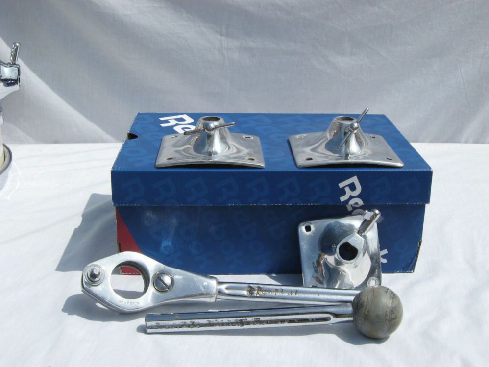 In addition to the kick drum spurs, I'll probably be on the lookout for a 14" matching floor tom (or a marcher to convert) or 12" mounted tom as well so I'll have a dope little combo kit for duo and trio gigs. Please PM me if anyone has a possible line on those parts for sale or trade.
