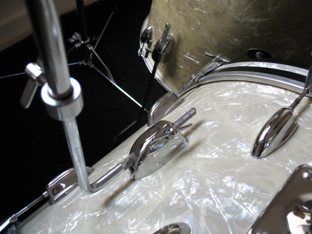 Hello! I've got an Slingerland vintage kit. It's from 1971 and I think that it's a Buddy Rich one. I was repairing it but I can't find one the pieces, the cymbal holder. I was looking for information of the bass drum cymbal holder and I think that hole is not from the original piece. Does anybody know what is the piece that was mounted on the bass? Even I thought that it's possible that last owner used a bass drum leg part as a cymbal holder part, but I don't know which.