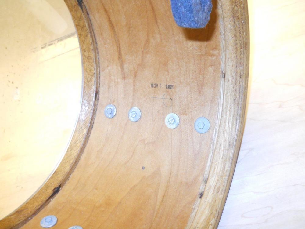 Hey idrum4fun, check this out. There is another Shelbyville tom on eBay (item #201905460570) that has no badge or air vent and DOES have the month, day, year date stamp. It also has the P handwritten rather than stamped. Also the WMP Shelbyville snare we have discussed in the past has a month, day, year date stamp.