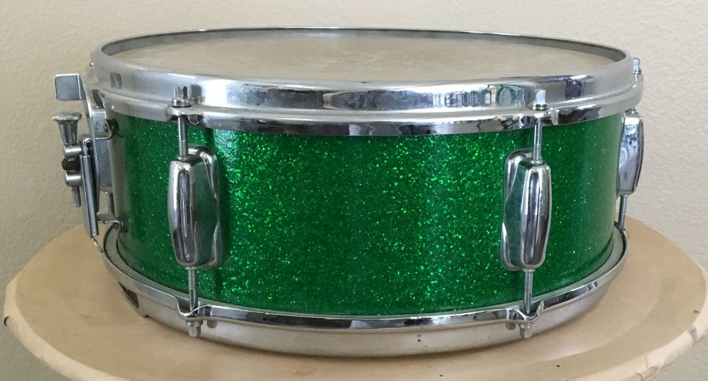 That drum should sound great with new heads and snare wires. The green is vibrant for being 56 years old.
