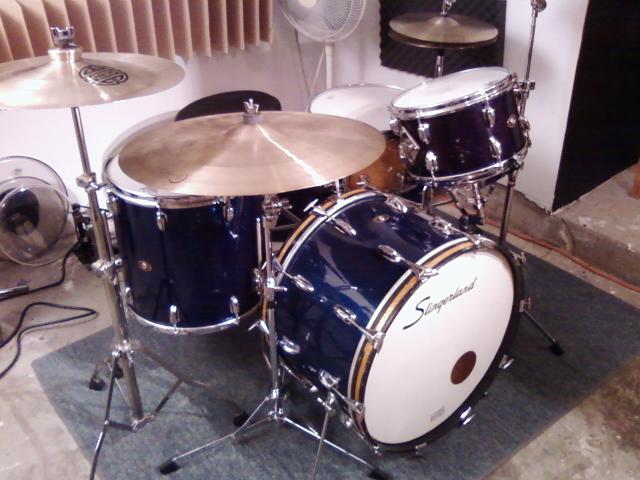 The one you're refering to is the Slingerland red sparkle I had up to show someone. That kit I would not sell for less than $700, it's in great condition, except for the badges being cut off. The kit I'm selling for $450 is the Slingerland blue sparkle at the top of the thread, all badges are present.