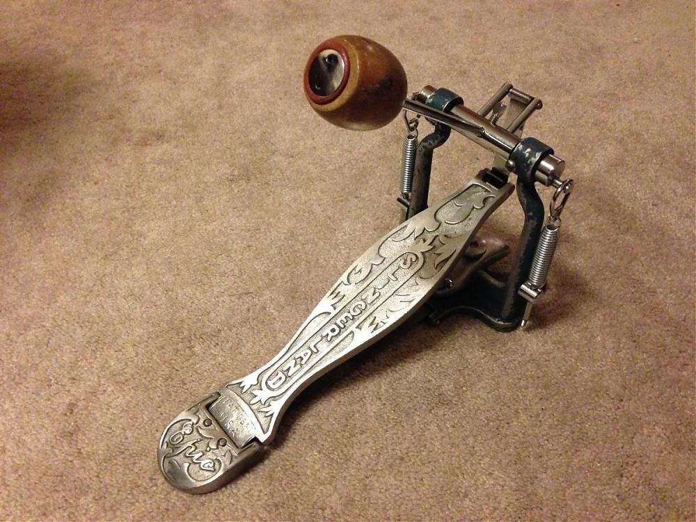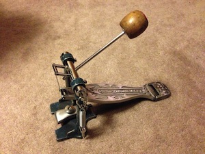 One of the most beautiful pedals ever made. This particular pedal has several upgrades that make it much more usable than the typical Epic. It's on a twin spring AA frame, which provides a much better feel than the single spring frames. Also, I've upgraded the springs and rings with new DW models (though I'll include the originals also). It's nice and lubricated, no squeaks here. Finally, it comes with a sweet old-school wooden beater that sounds great in a variety of settings.