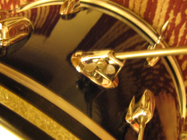 All lugs, FT leg mounts, cymbal mount, bass claws, and tension rods are in good to good+ condition with very minimal pitting... a very few t-rods have a small amount of rust that I missed when cleaning. The ends of the torpedo t-handles show wear. The claws are very nice.