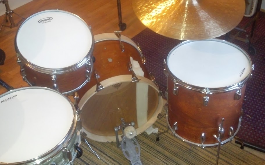 I had these listed earlier, and decided to get the rest of the hardware and finish them out. After tracking down wood hoops, T's, and claws, I just looked at the catalog for the bop size Jet outfit, and realized the bass drum came with stick saver hoops, which I still have! Oh well.